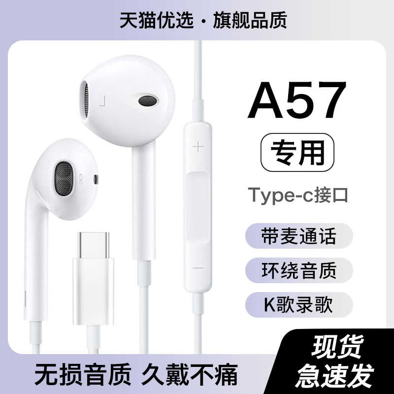HANG适用oppoa57耳机有线原装正品oppo手机0pp0新款专用typec接口