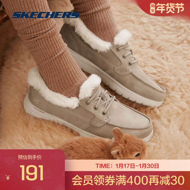 斯凯奇冬季女鞋浅口单鞋乐福鞋豆豆鞋加绒休闲鞋一脚蹬懒人平底鞋