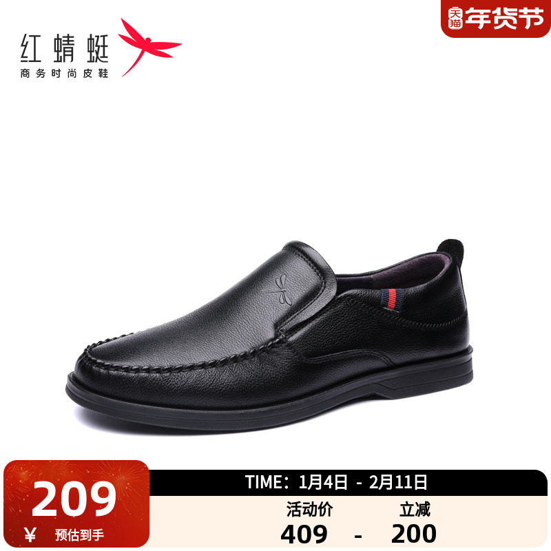 红蜻蜓休闲皮鞋男士真皮单鞋套脚鞋舒适爸爸鞋懒人鞋中年男休闲鞋