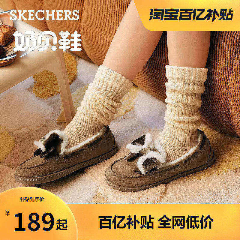 斯凯奇官方outlets单鞋女平底加绒保暖舒适休闲鞋一脚蹬懒人鞋子