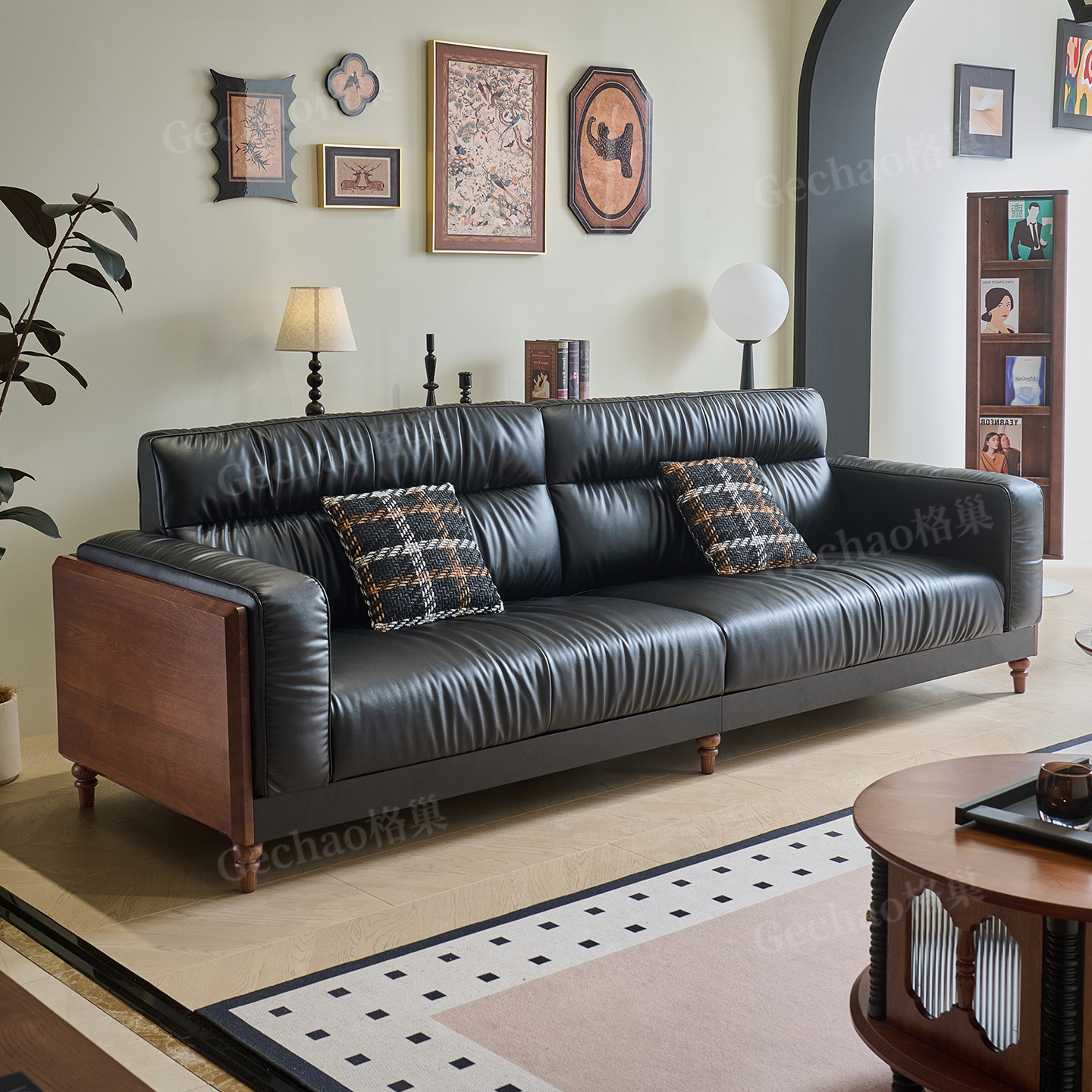 北美黑胡桃木现代轻奢沙发组合别墅家用客厅头层牛皮新中式高级感