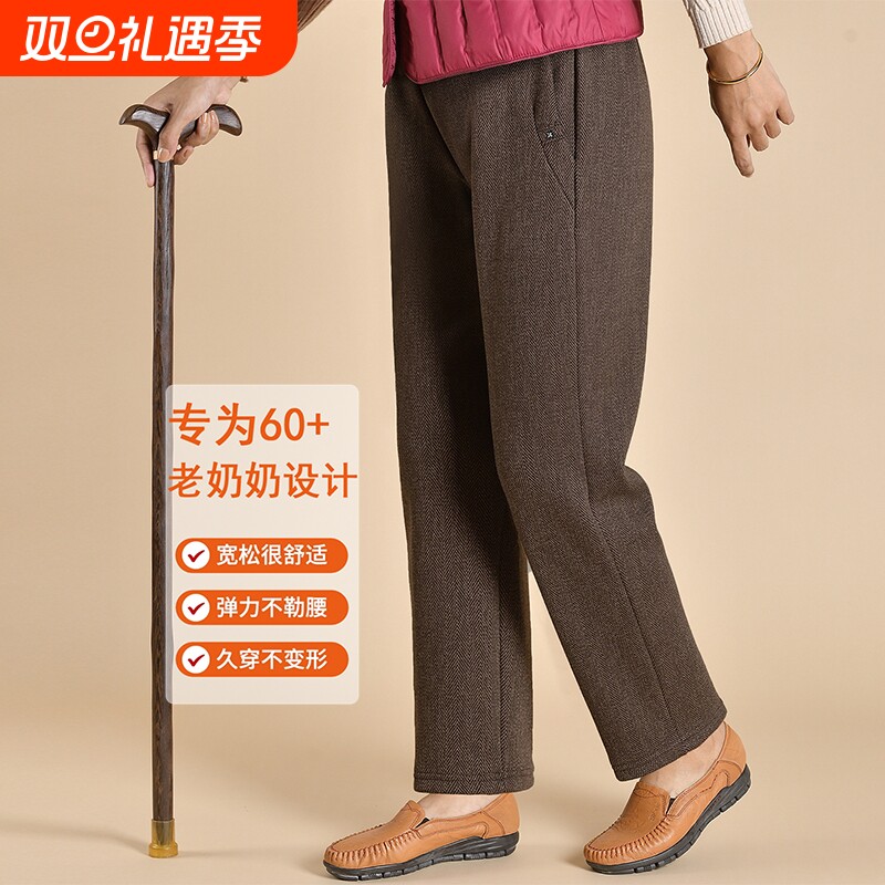 妈妈裤子秋冬加绒加厚保暖外穿中老年女裤奶奶裤高腰秋冬款直筒裤