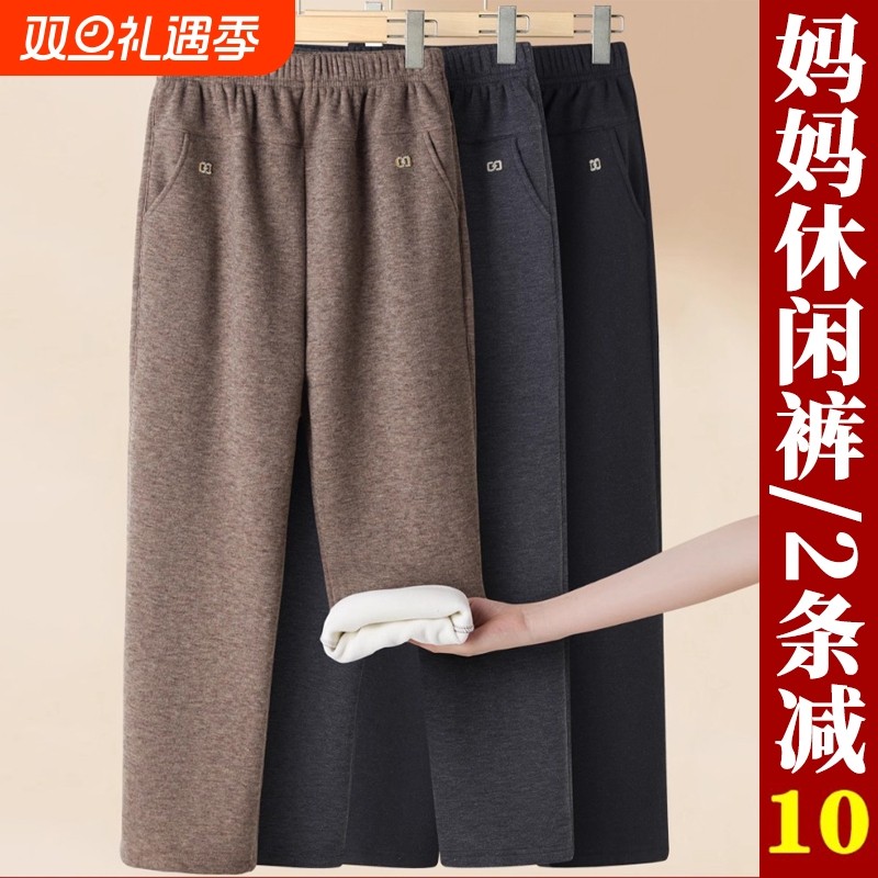 中年妈妈裤子秋冬加绒加厚中老年女裤保暖直筒裤宽松高腰休闲长裤