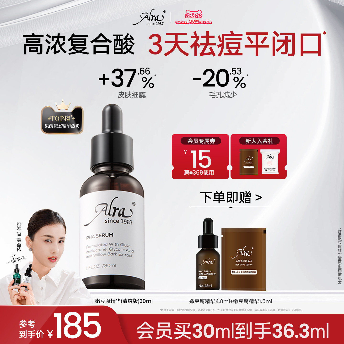 【黄圣依同款】Alra多酸嫩豆腐祛痘精华水杨酸去闭口粉刺黑头油痘