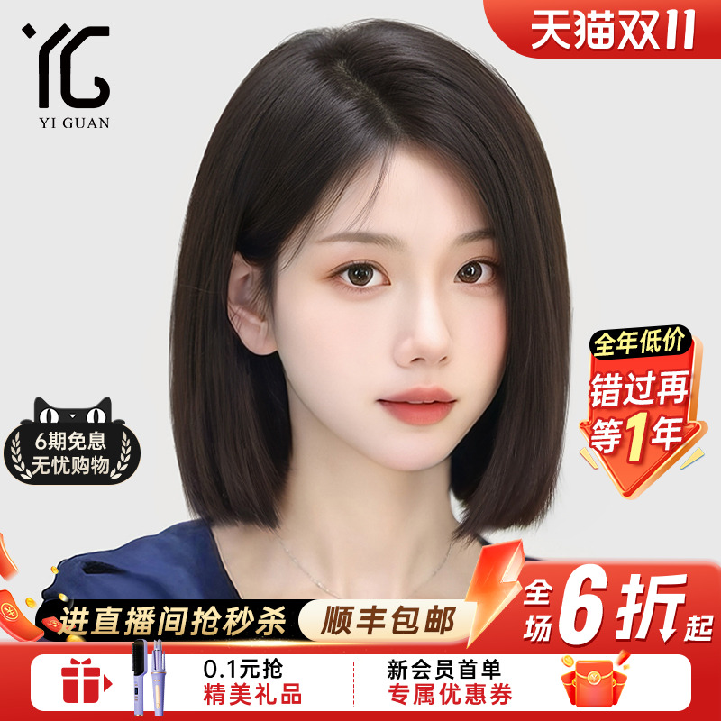 - 假发 女 真发时尚短发