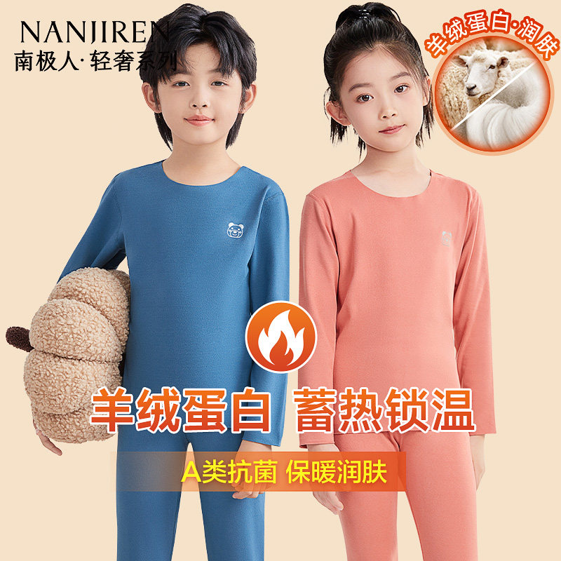 南极人青少年秋衣秋裤女款上衣初高中生加绒加厚保暖内衣套装冬季