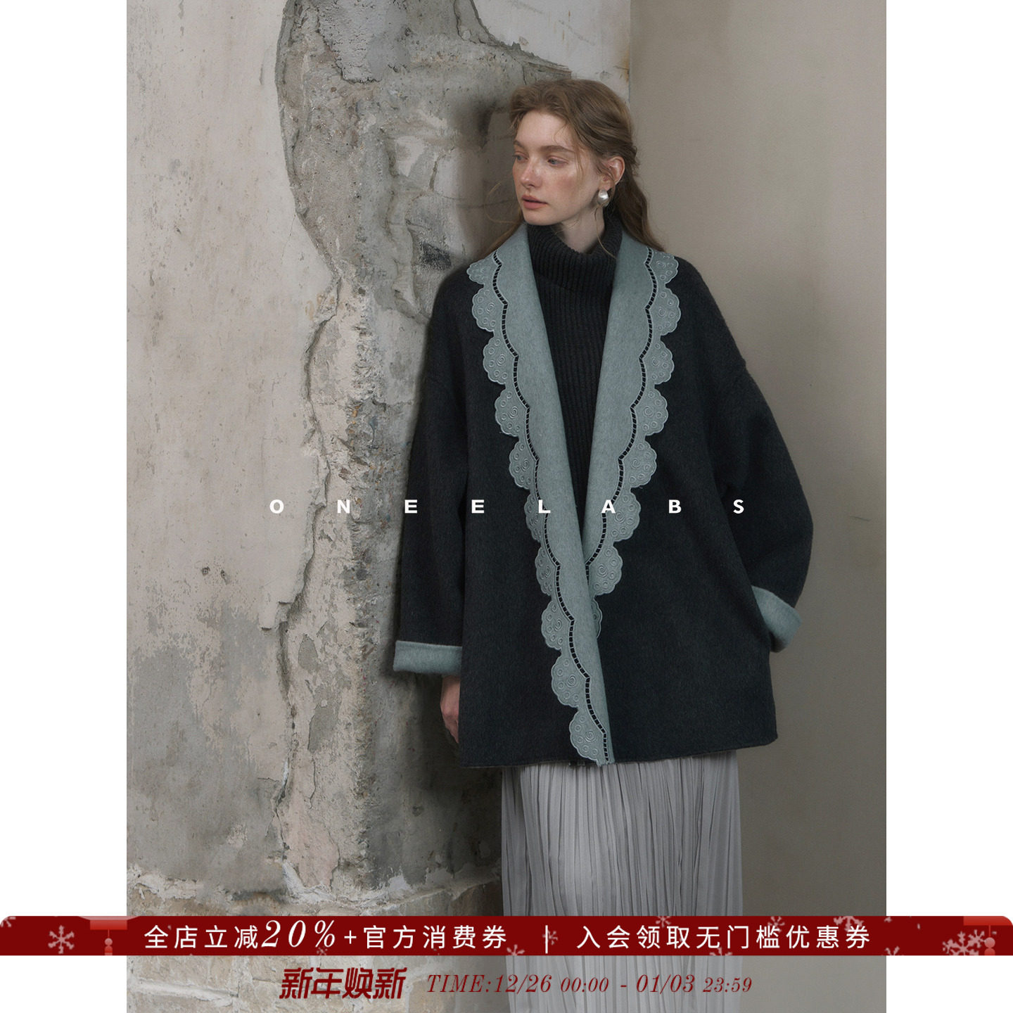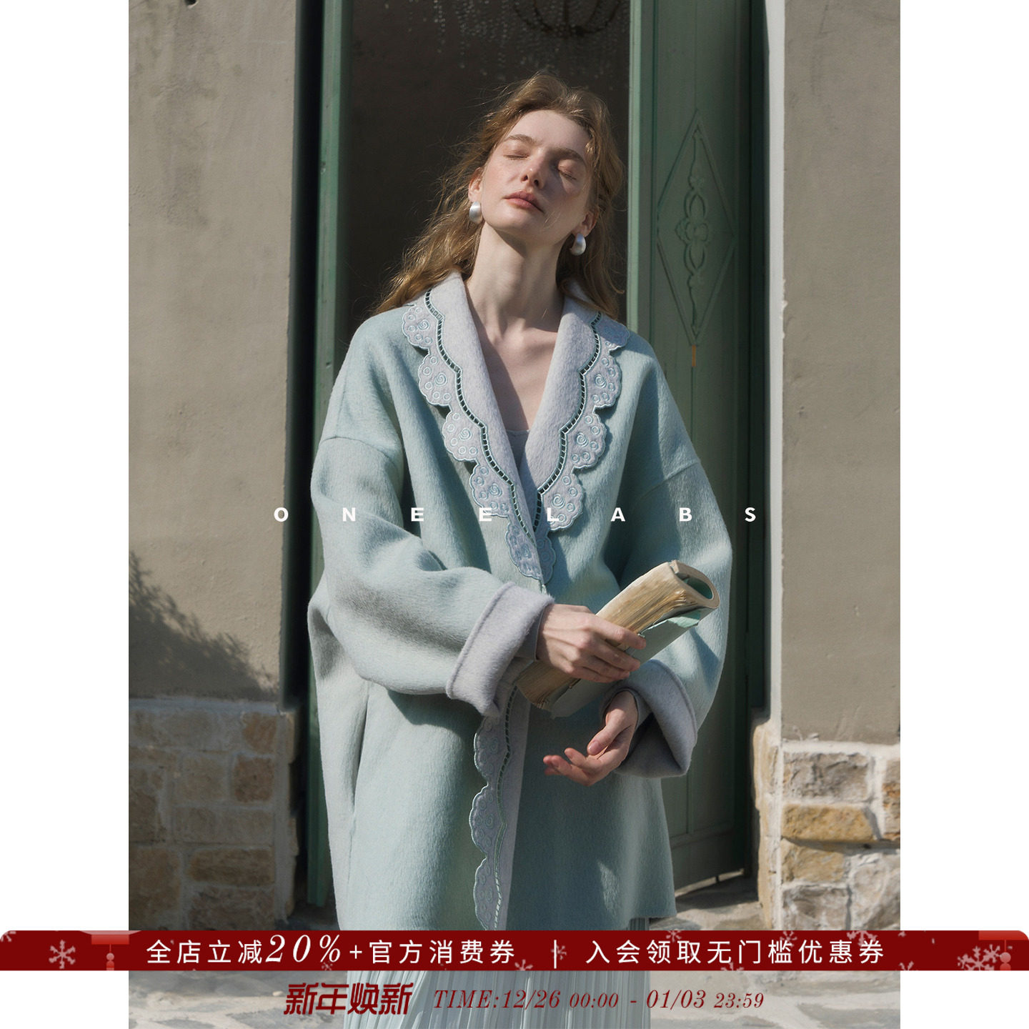 ONEELABS原创品牌 可两面穿 100%绵羊毛绣花领轻奢双面呢毛呢大衣