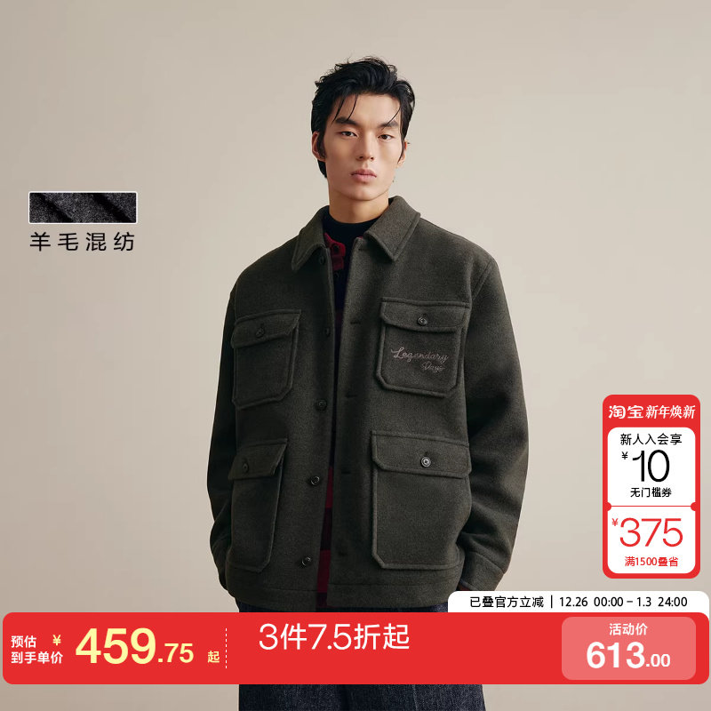 杰克琼斯2025年秋冬新款男装毛呢大衣时尚百搭外套贴布刺绣上衣