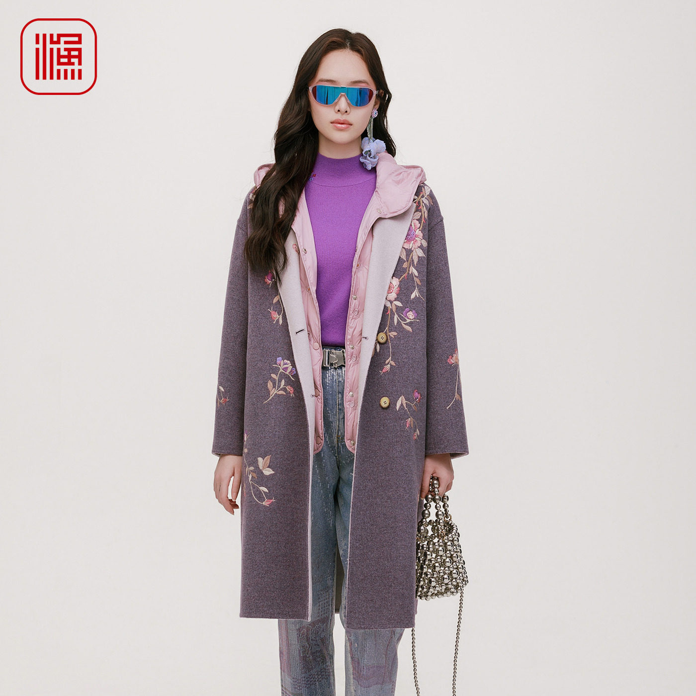 冯(CHAOMEI【紫玉秋香】新中式双面可穿定位刺绣绵羊毛毛呢大衣