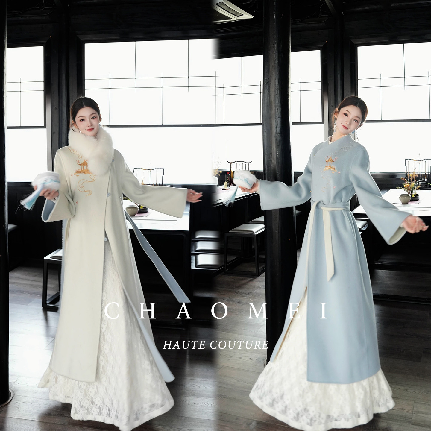 冯(CHAOMEI【兰蝶2.0】国风新中式纯绵羊毛双面可穿绣花毛呢大衣