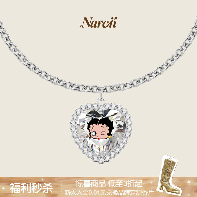 NARCII水晶钻石项链女爱心吊坠小众设计复古秋冬毛衣链生日礼物