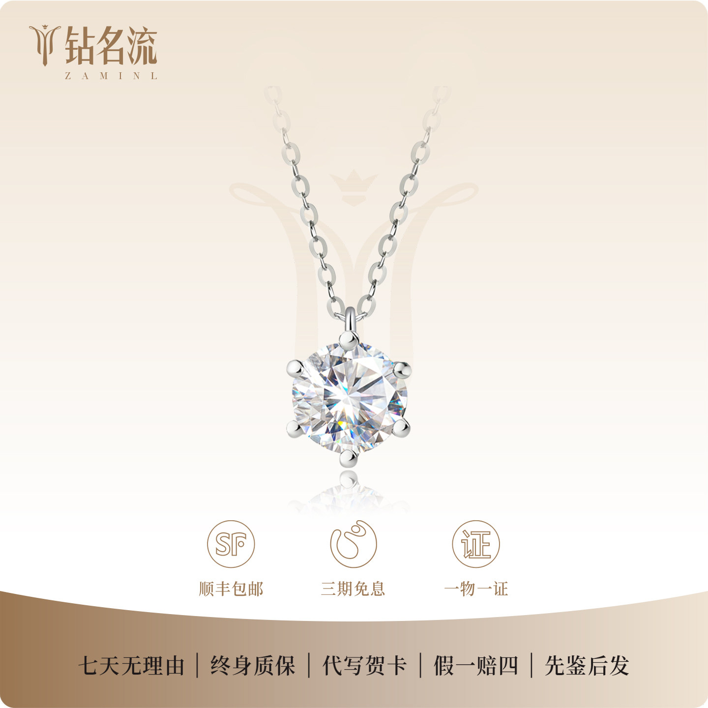18K金培育钻石项链吊坠女款1克拉Pt950铂金白金鼻屎四爪Au750珠宝