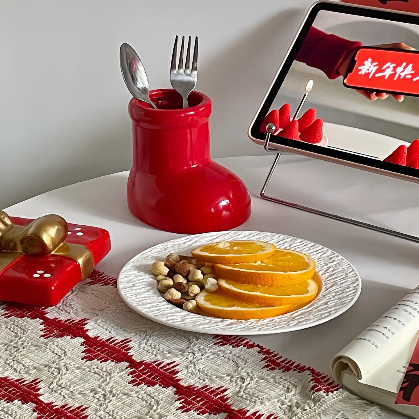 红鞋子花瓶圣诞创意可爱小号插花陶瓷瓶高级感桌面办公室收纳笔筒