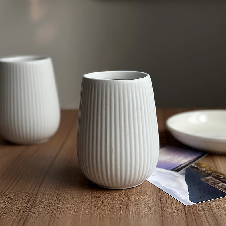 半颗橘子HO质感哑光家具简约细条纹陶瓷花瓶花插瓶小号陶瓷花瓶