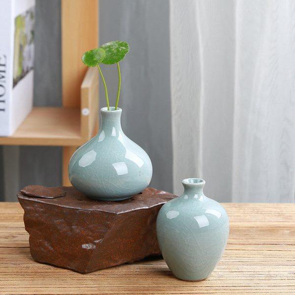 青瓷陶瓷迷你纯手工台面花插摆件简约小花瓶复古小号现代家居花器