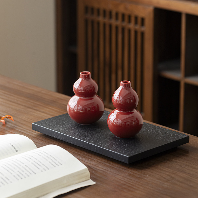 陶瓷中国红花瓶全红色红釉葫芦花瓶小号招财葫芦郎红福禄玄关摆件