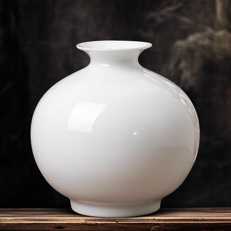 景德镇陶瓷 现代简约白色花瓶小号 客厅干花插花器餐桌装饰品摆件