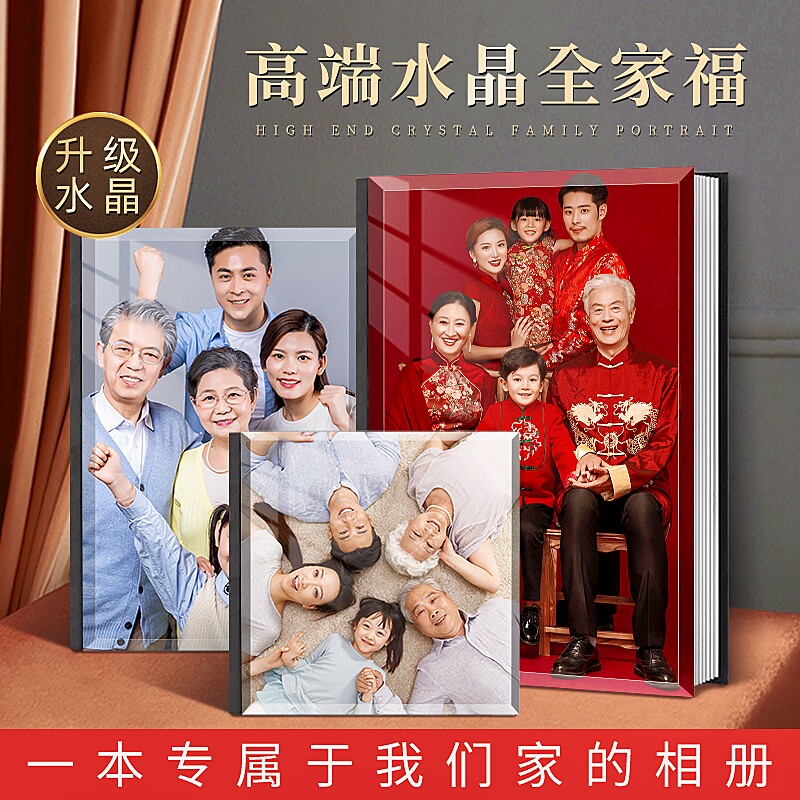 全家福相册定制作影楼水晶洗写真照片打印成册宝宝家庭旅行纪念册