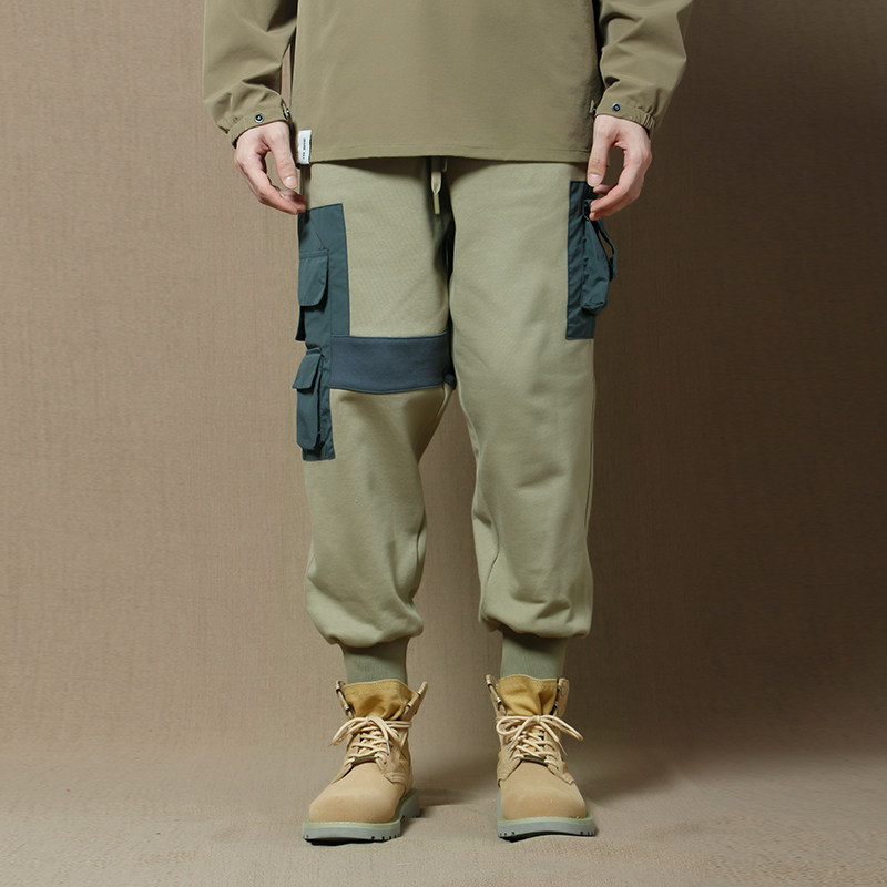 日系复古休闲裤男士宽松潮牌纯棉拼接运动束脚裤秋冬季加绒工装裤
