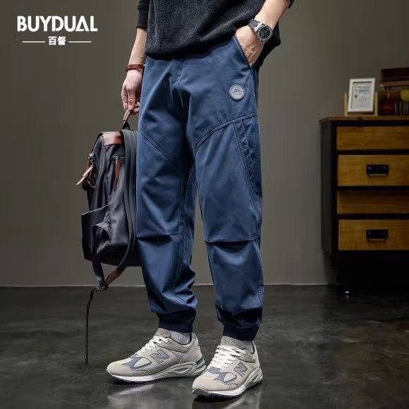 裤子男夏季薄款潮牌束脚裤宽松大码日系韩版潮流纯棉工装休闲长裤