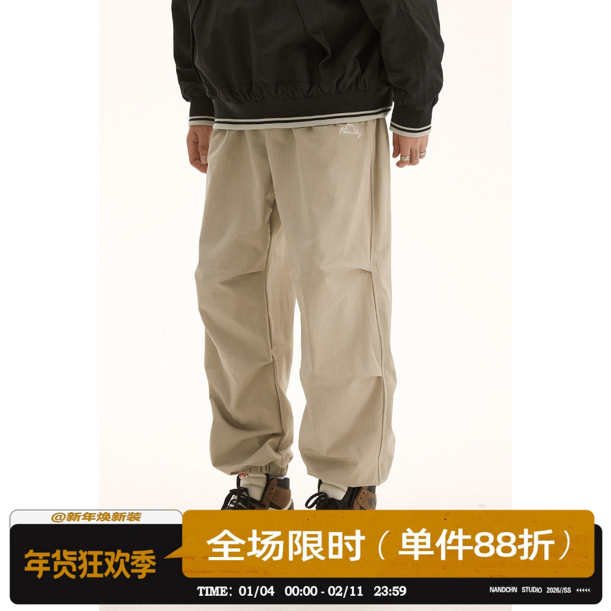 日系复古机能户外锥形裤男宽松百搭纯色束脚裤潮流抽绳工装休闲裤