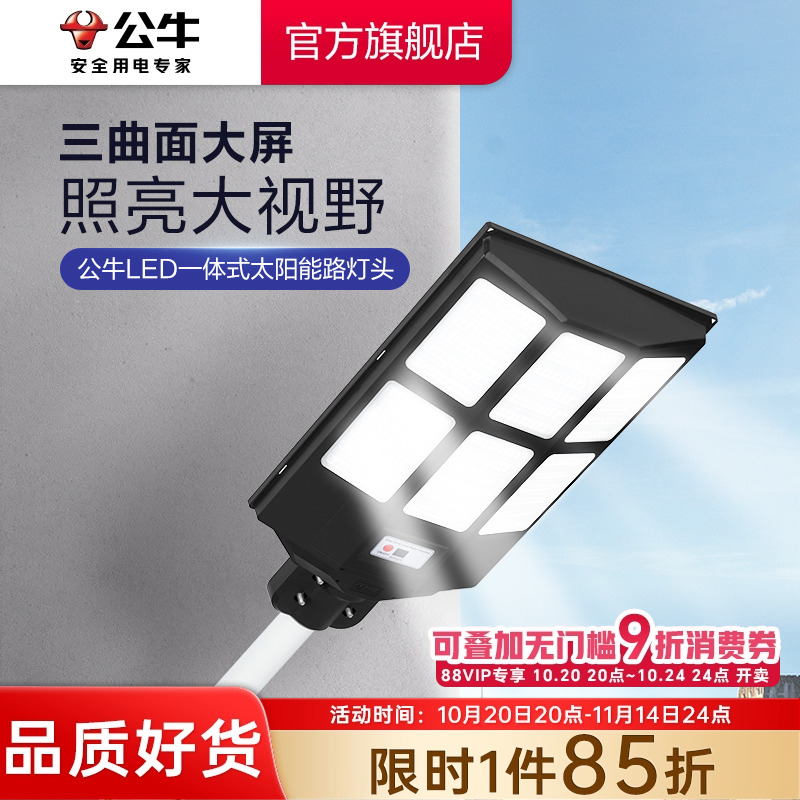 公牛新款太阳能路灯头农村家用户外庭院灯室外一体化防水感应灯头