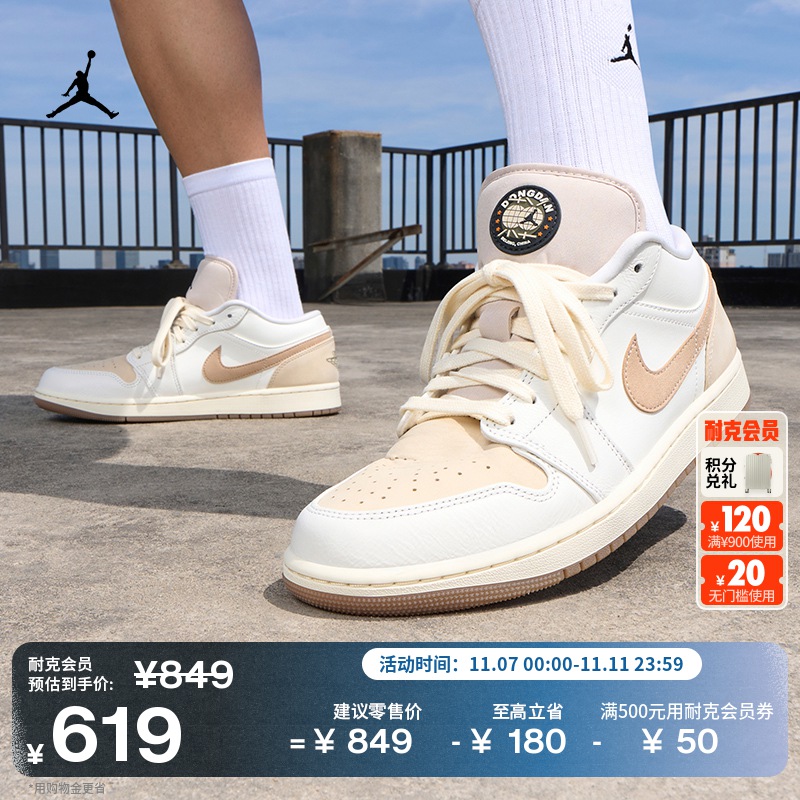 耐克乔丹男子低帮AJ1板鞋冬季缓震部分皮面运动鞋JORDAN IH0648