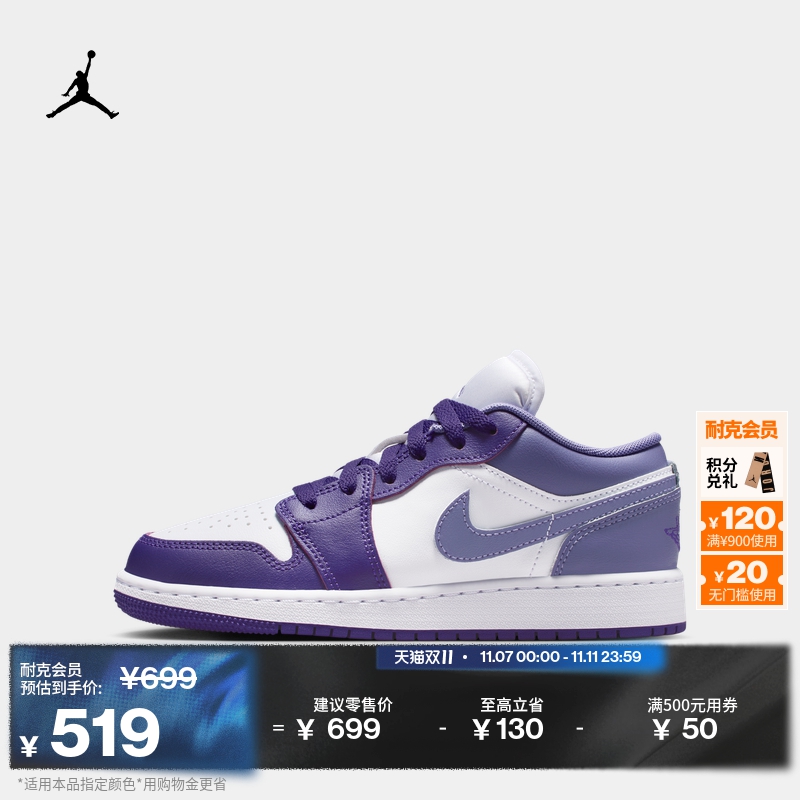 Jordan官方耐克乔丹男童AJ1板鞋大童运动童鞋夏季低帮气垫553560