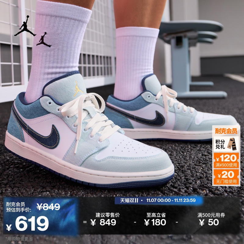 耐克乔丹男子轻便AJ1板鞋冬季低帮缓震抓地运动鞋JORDAN IB8855