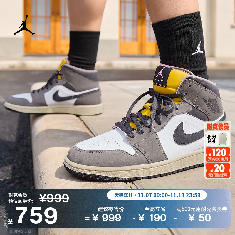 耐克乔丹男子轻便AJ1板鞋冬季平底中帮缓震运动鞋JORDAN HQ2011