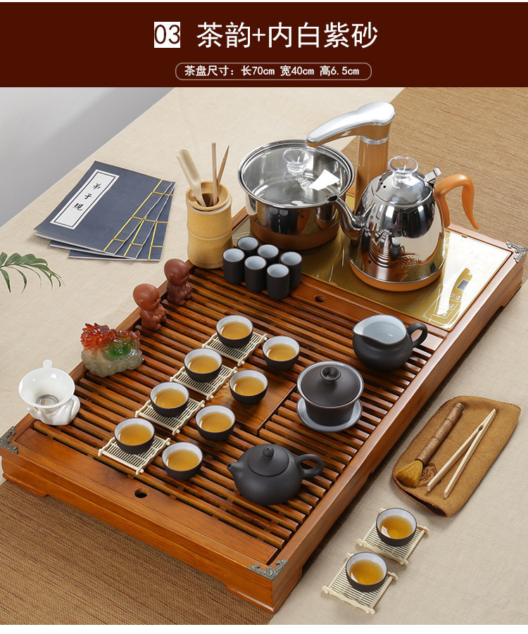 实木茶盘茶具套装家用功夫紫砂陶瓷全自动四合一玻璃壶电磁炉一体