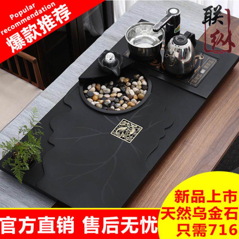 联纵茶盘套装全自动一体乌金石头茶海功夫茶具茶台四合一体电磁炉