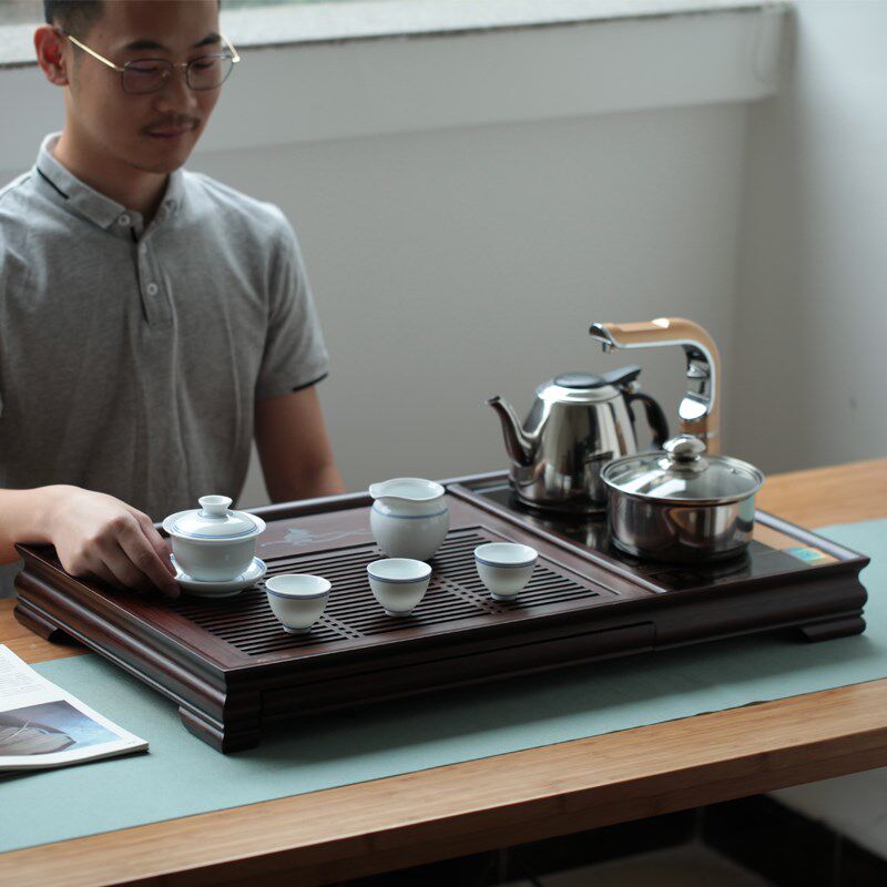 全自动茶盘实木茶海家用茶台茶托陶瓷功夫茶具四合一体电磁炉套装