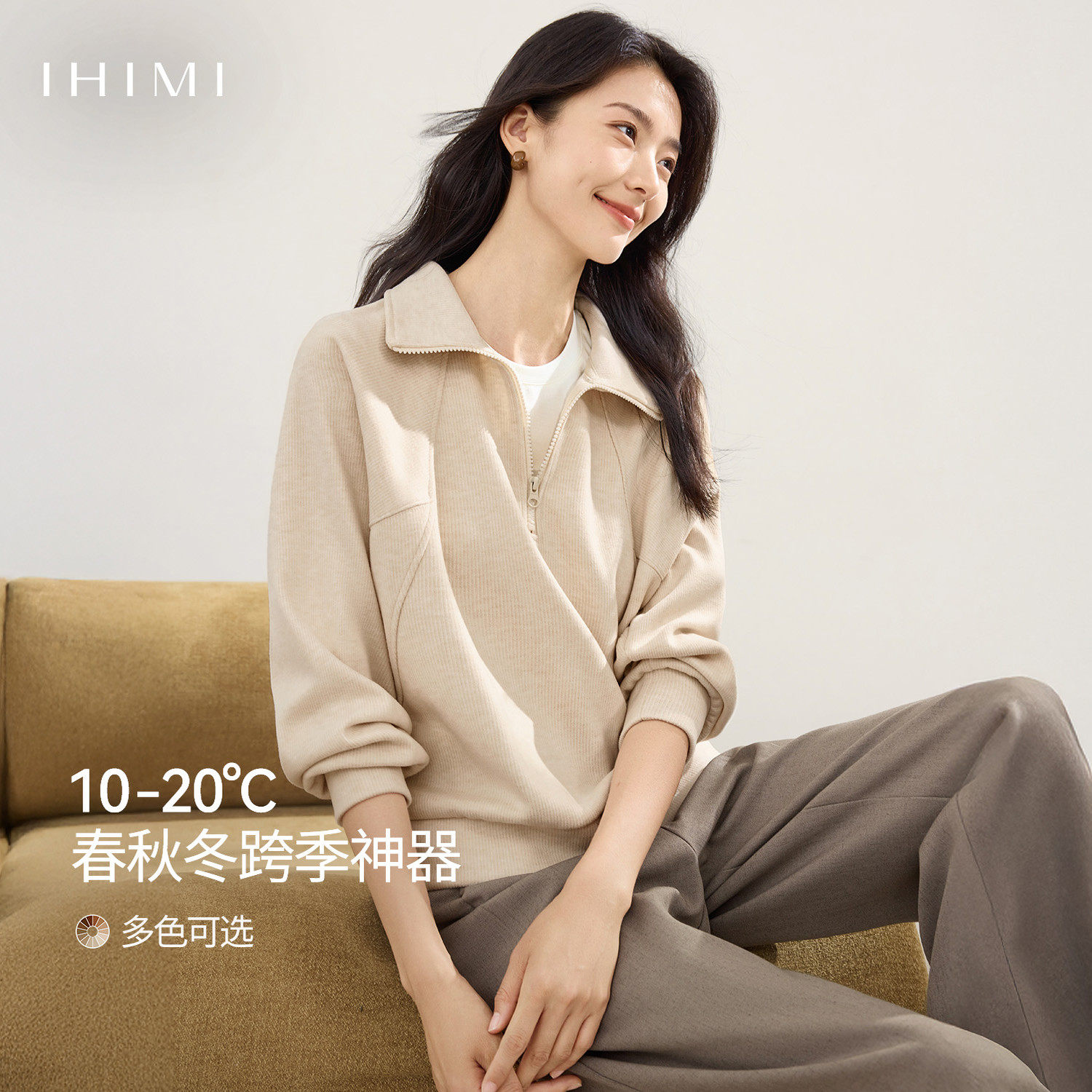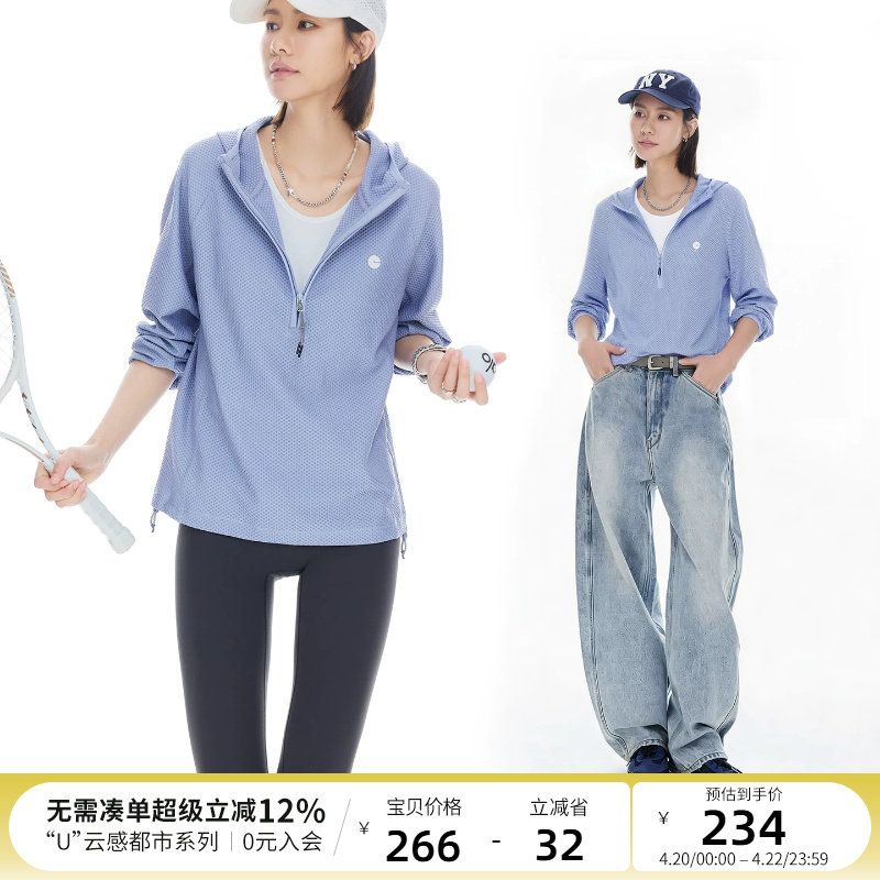 云上生活【轻感肌理】轻量凹凸格半拉链连帽卫衣2026春显瘦上衣女