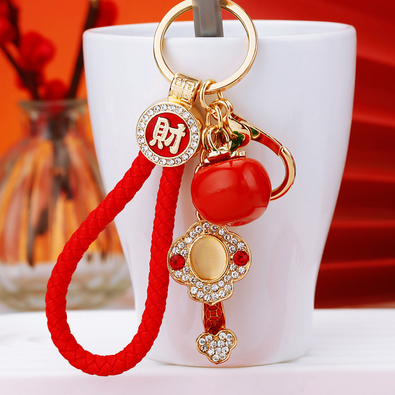 中国风卡通纳福如意招财猫钥匙扣创意福字挂件情侣金属包包配饰品