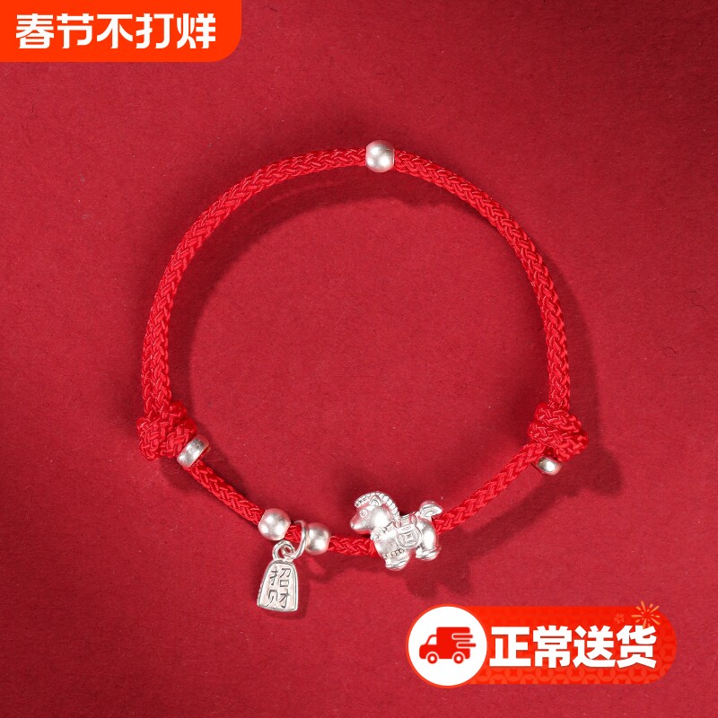 圣诞马年本命年红绳纯银手链足银999男女生生肖马礼物编织如意