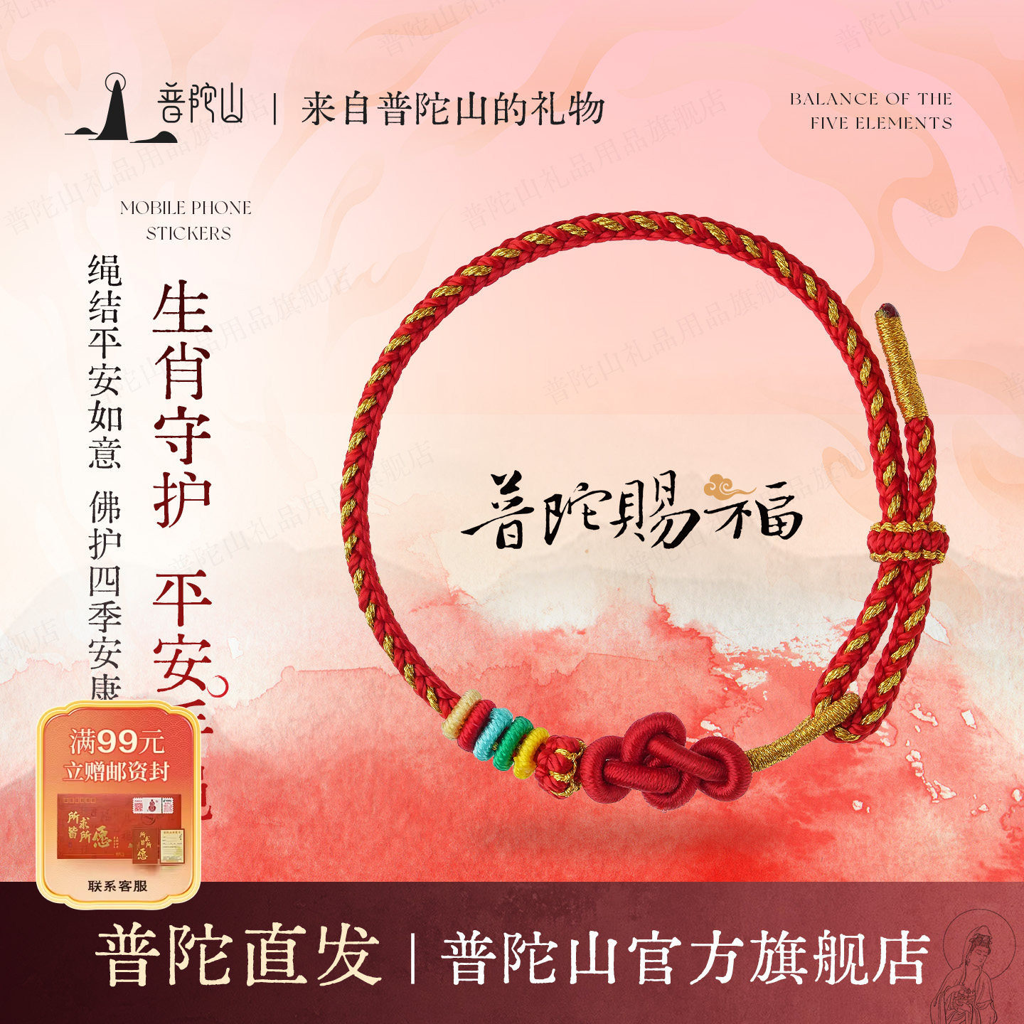 【普陀山正品】2026本命年转运护身手绳手工编织招财进宝红绳手链
