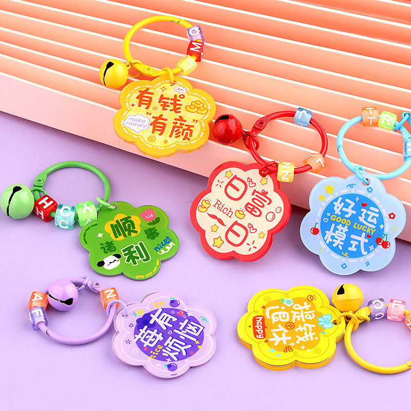 花朵亚克力钥匙扣挂牌好事发生诸事如意吉利牌diy挂件未来可期