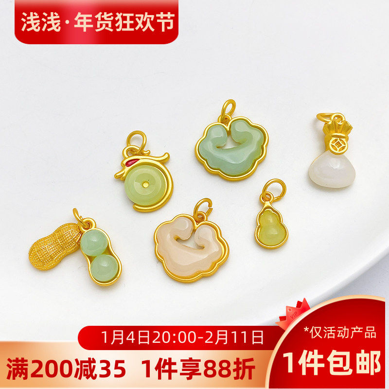 古法金保色葫芦花生如意锁吊坠挂件手工diy手链项链饰品材料配件