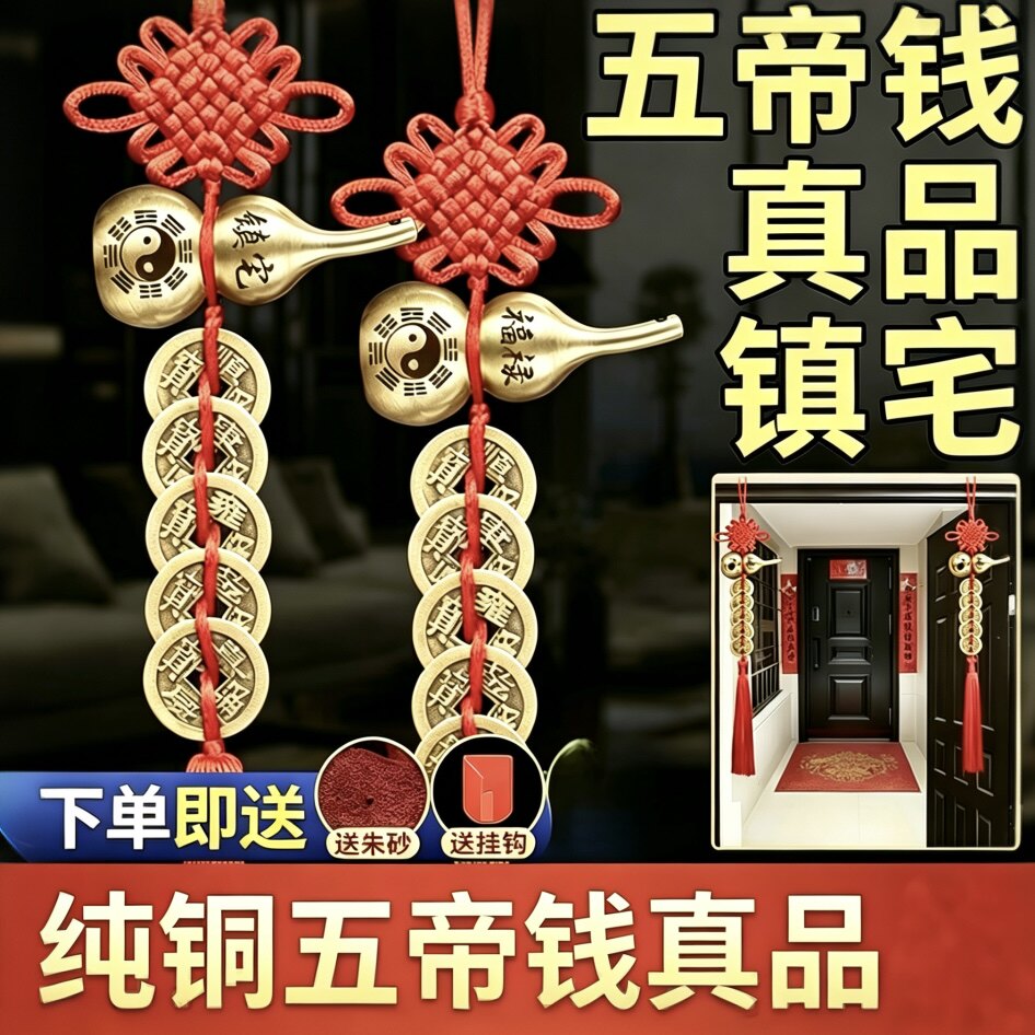 五帝钱真品门对开门过光镇宅葫芦铜钱串大门对卧室厨房窗户门挂件