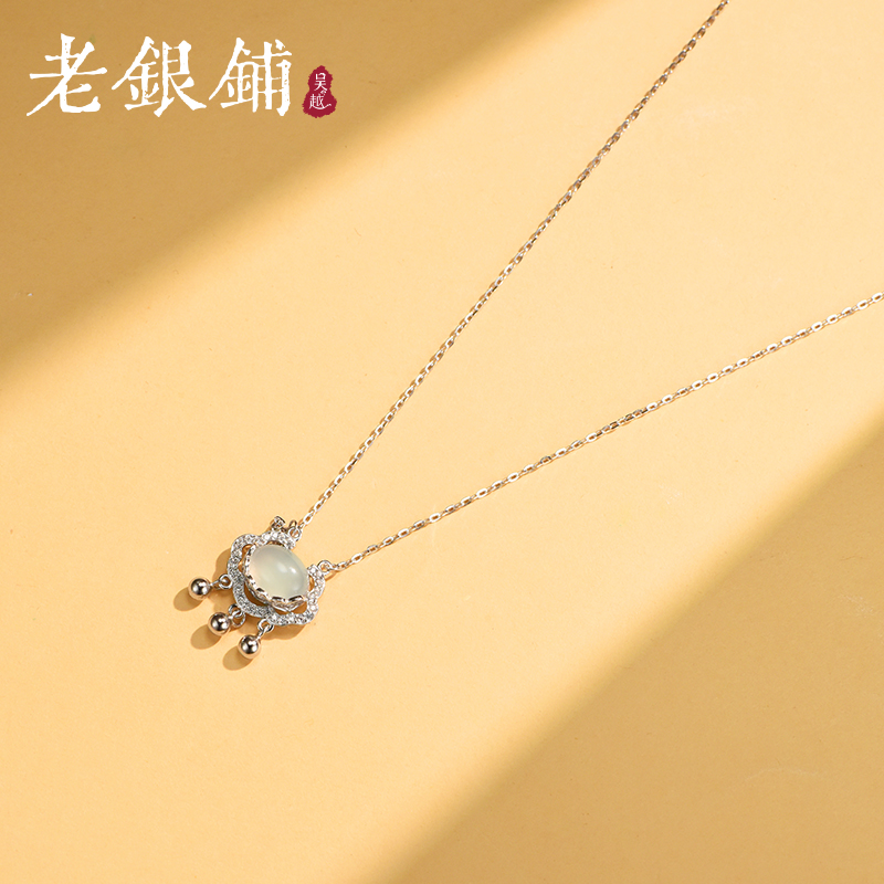 吴越老银铺正品坠链珐琅s925银映山河项链新中式如意锁银项链百搭