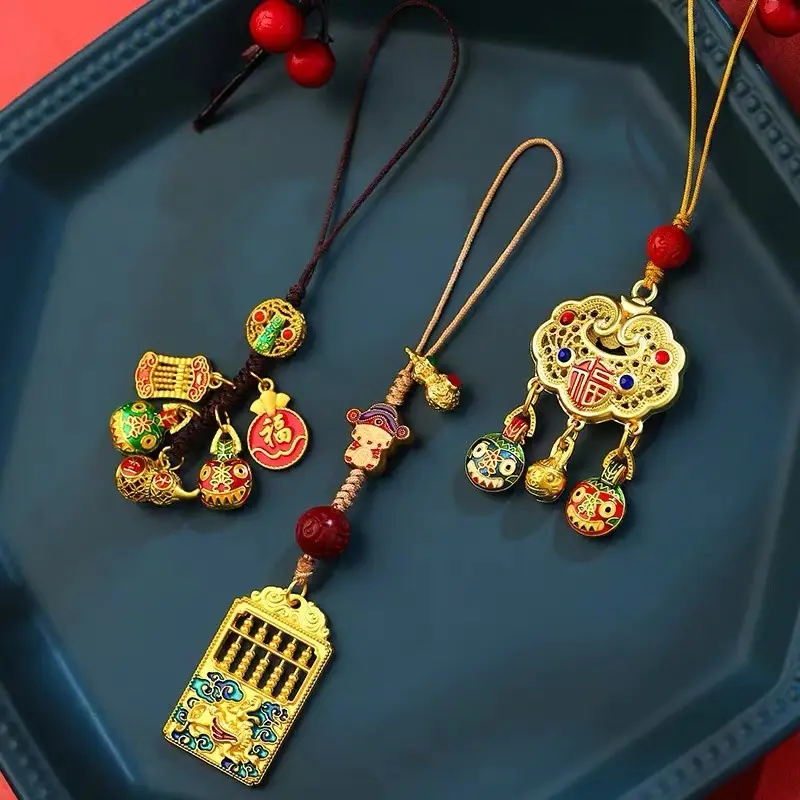 【纯手工制作】高档汽车挂件车内吊饰黄铜珐琅如意保平安锁男士女