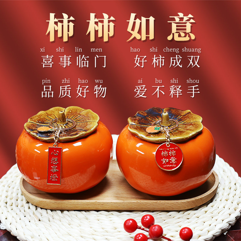 招财事事如意柿子摆件搬新家乔迁之喜礼物客厅玄关电视柜酒柜装饰