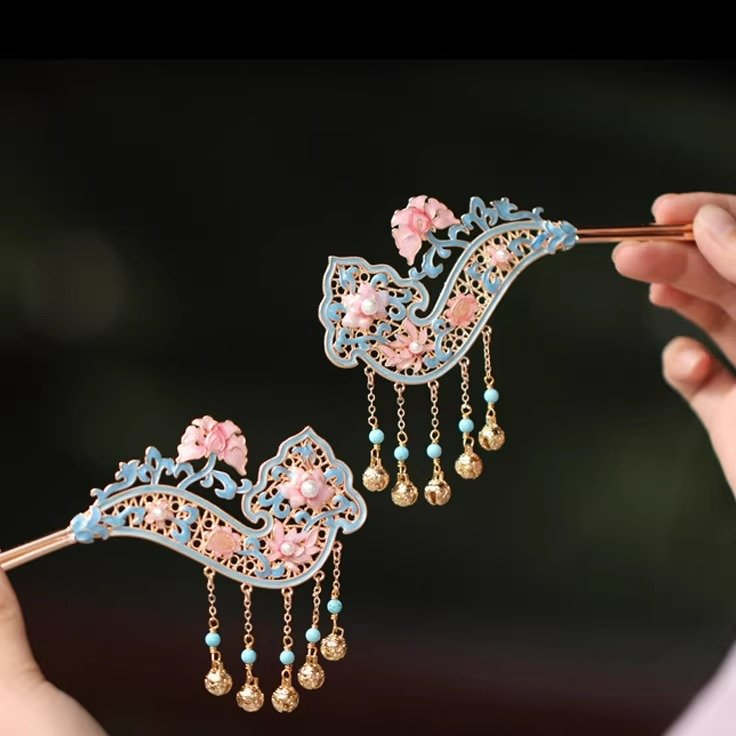 复原宋制博鬓仿烧蓝如意步摇流苏超仙宫廷复古配饰品日常盘发钗子