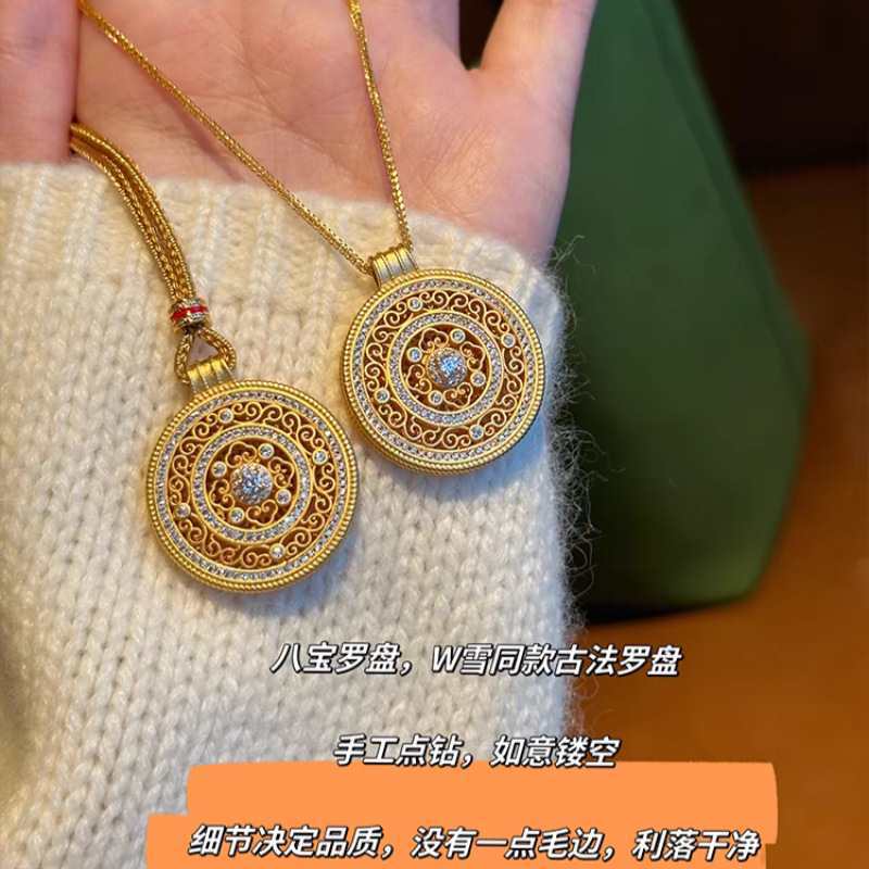 韦雪同款八方来财点钻花丝如意罗盘吊坠项链双面镂空高级感锁骨链
