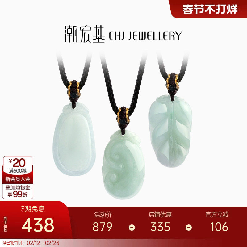 潮宏基倾玉天然翡翠项链吊坠挂坠套链黑绳糯种如意礼物典雅送礼女