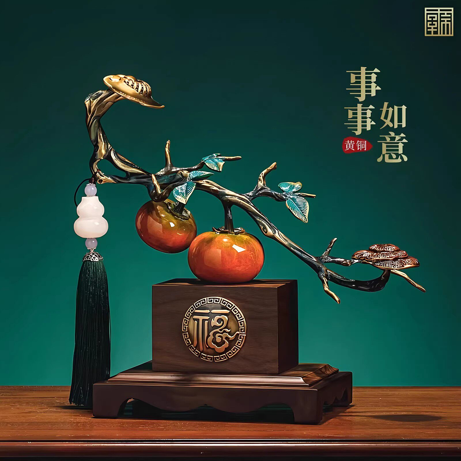 大明铜匠事事顺心柿柿如意柿子摆件领导办公室装饰品开业乔迁礼物