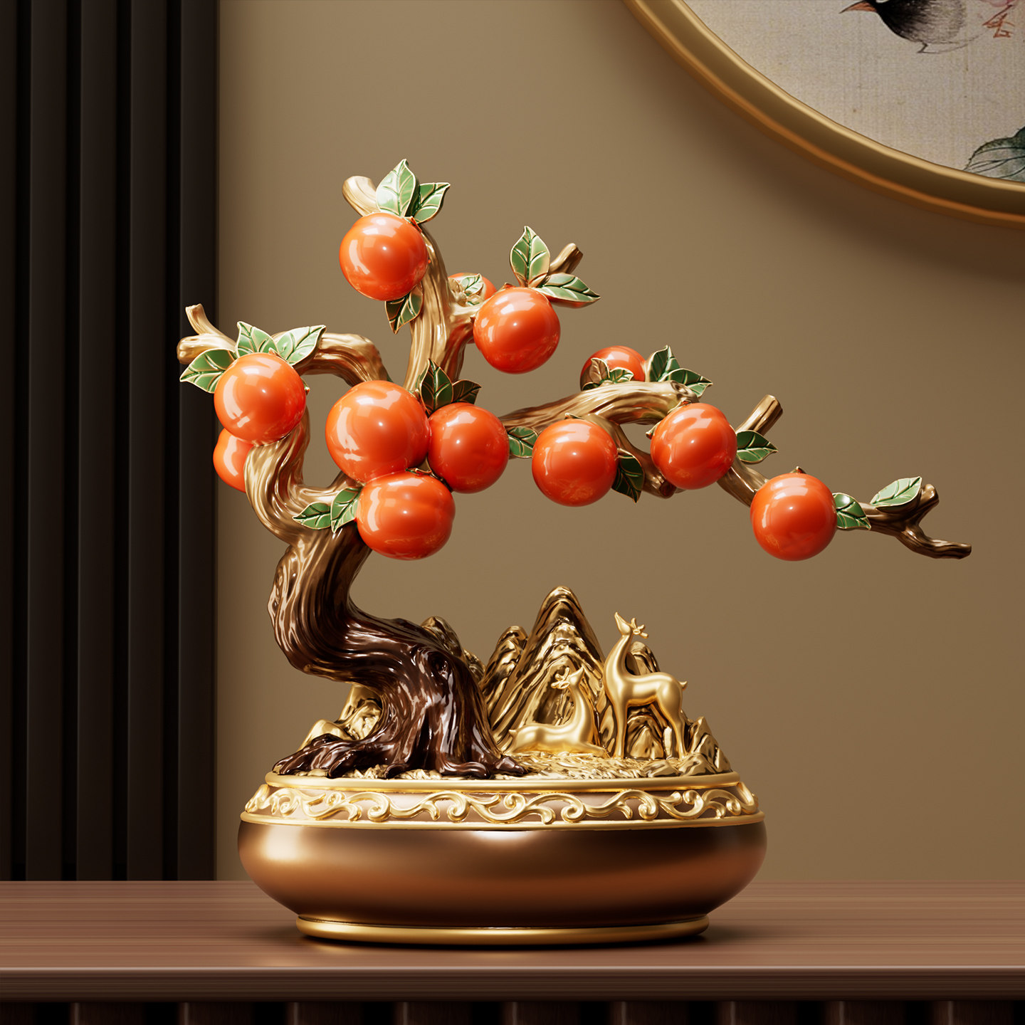柿柿事事如意柿子摆件客厅玄关酒柜装饰送领导搬新家乔迁之喜礼品