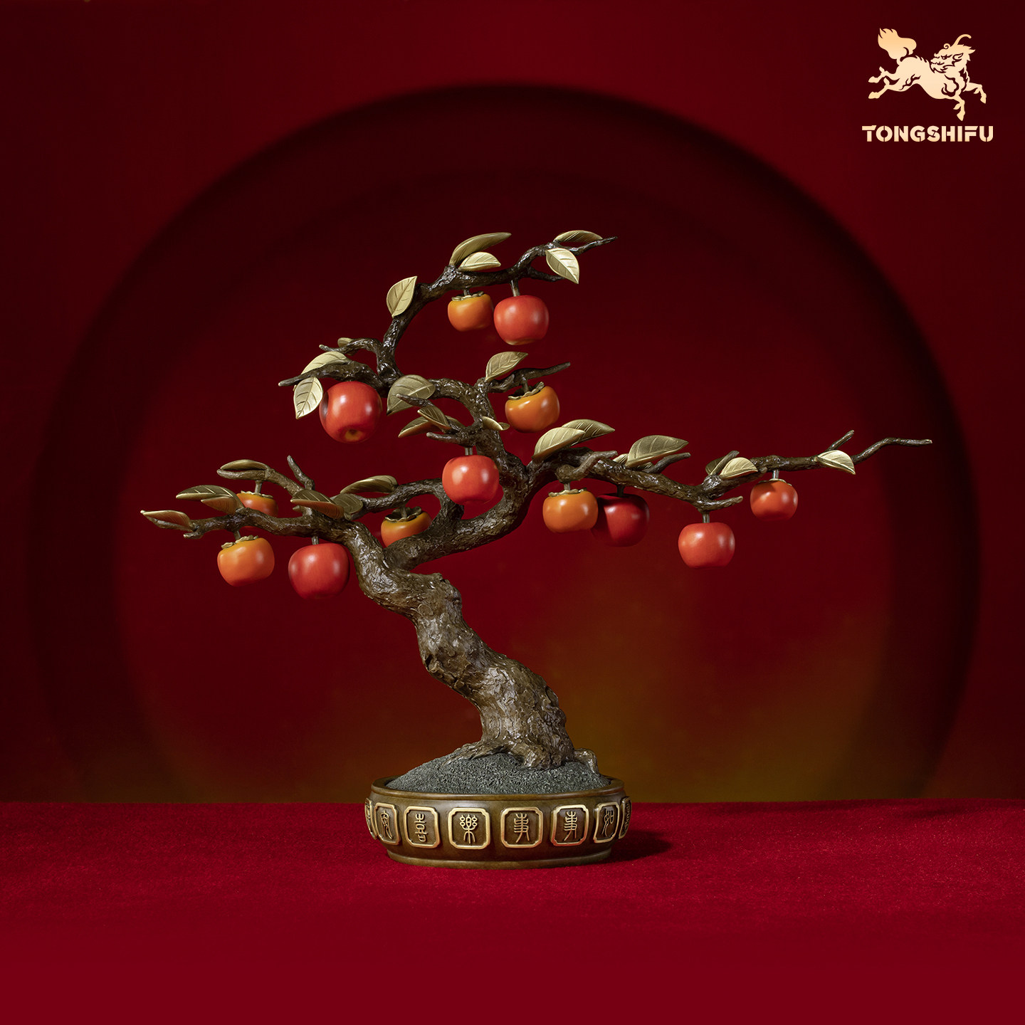 铜师傅《柿事如意》客厅桌面铜柿子摆件 家居装饰工艺品 新年礼物