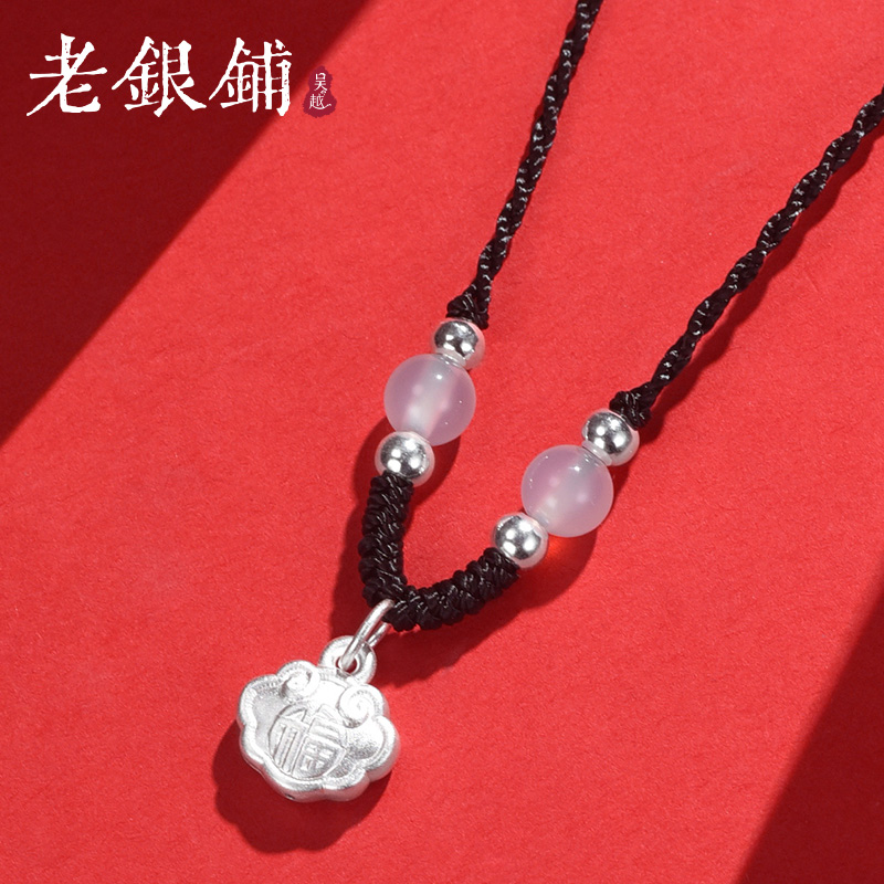 吴越老银铺足银999如意吊坠简约古法小众编织绳百搭中国风项坠